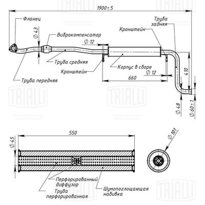 Предглушитель выхлопных газов TRIALLI EAM0121