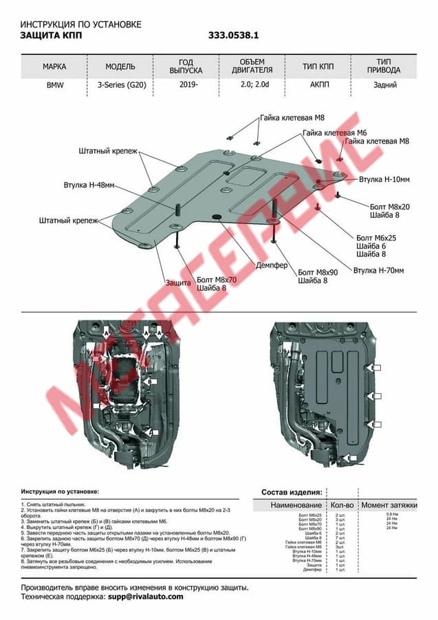 Алюминиевый комплект защит радиатора и КПП RIVAL для BMW G20